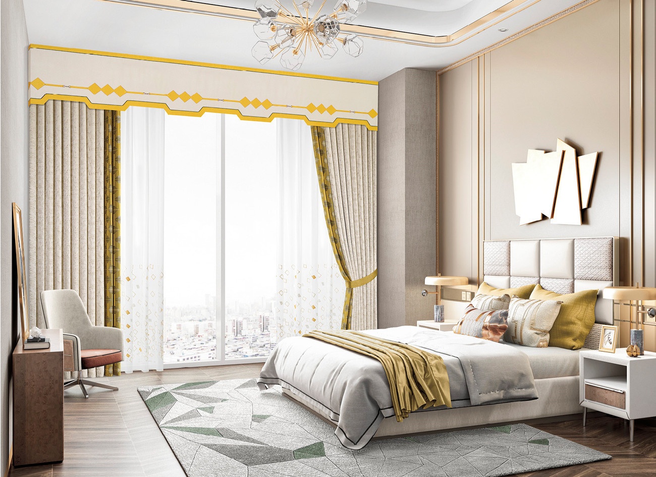 古金色,有著陽光般的溫暖,綻放于面料或復古或現(xiàn)代,賦予空間溫度