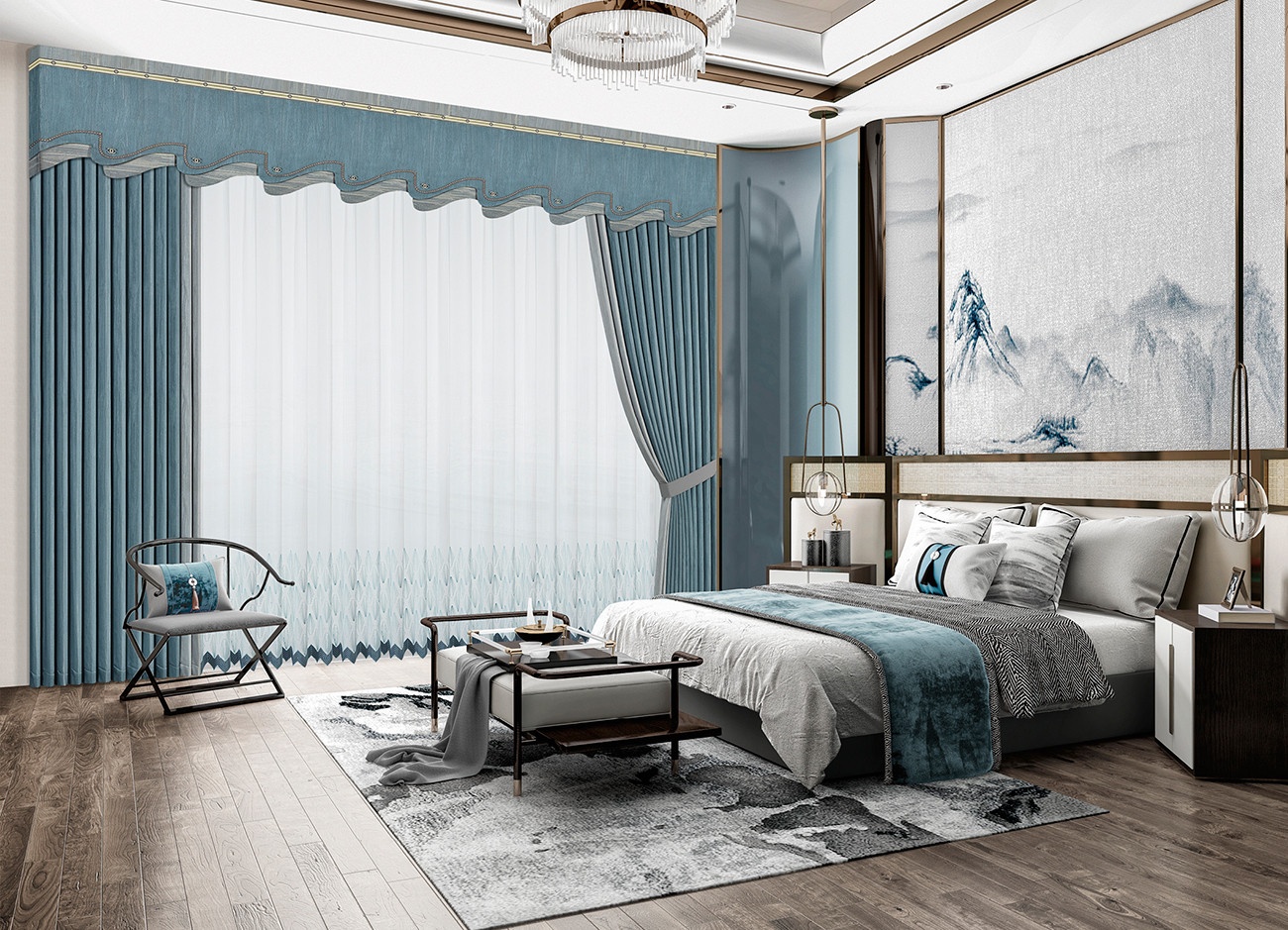 在點滴之間感悟時間萬象,是東方文化的精髓。藍色調(diào)亦如雨后美景,自帶煙雨朦朧視感,用于空間,渲染出東方美學(xué)的意境。