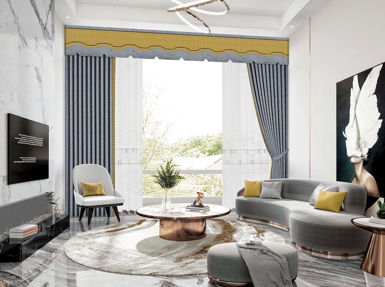 持久耐看的極致灰與生動(dòng)活潑的亮麗黃的色彩組合,在靜謐的色彩基調(diào)中感受陽(yáng)光般的溫暖與燦爛。凝練的色調(diào)、舒適的質(zhì)感,將靈動(dòng)、純粹交融為一,突顯高級(jí)質(zhì)感,任何空間選擇這種顏色都可以輕松駕馭,裝飾出潮范與風(fēng)雅。
